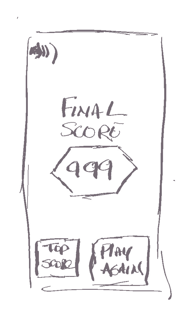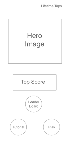 Early prototypes were shown in sketch form and users were asked to complete tasks related to tapping to increase their score, viewing top scores, and playing again. Testing also resulted in the request for two separate buttons for tapping in order to increase speed. This can be seeing in the higher fidelity wireframes below.