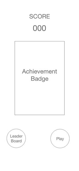 As feedback was gathered and analyzed, below you can see the addition of connectivity to an online leaderboard instead of just a local high score on the device. Also, prototype testing revealed feedback that "power-ups" might add to the game if there was an element of risk. There is now a UI element that rapidly displays power-ups for .25 second each. One of the items is actual a "Game Kill" element. If hit, this will immediately terminate the game and freeze your score. Lastly, Achievement Badges have been added based on score level.