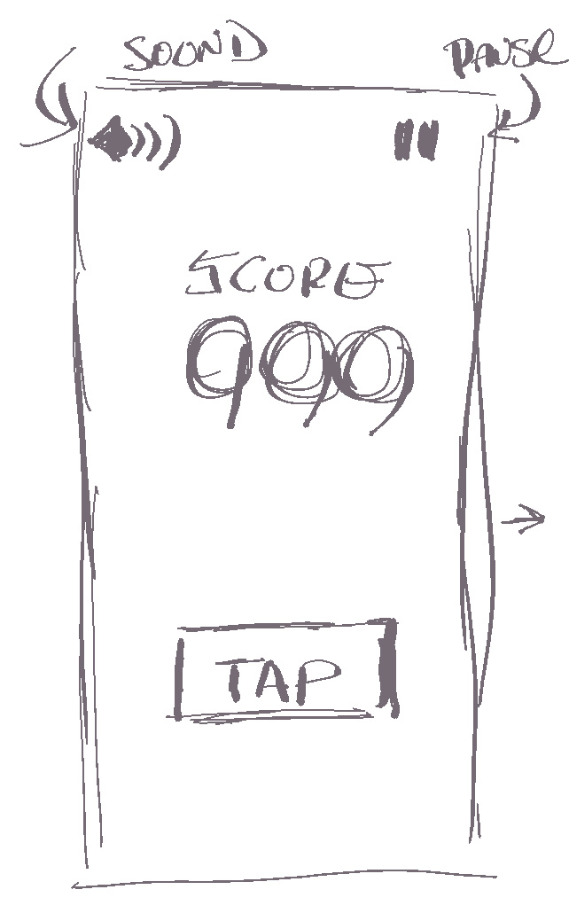 Early prototypes were shown in sketch form and users were asked to complete tasks related to tapping to increase their score, viewing top scores, and playing again. Testing also resulted in the request for two separate buttons for tapping in order to increase speed. This can be seeing in the higher fidelity wireframes below.