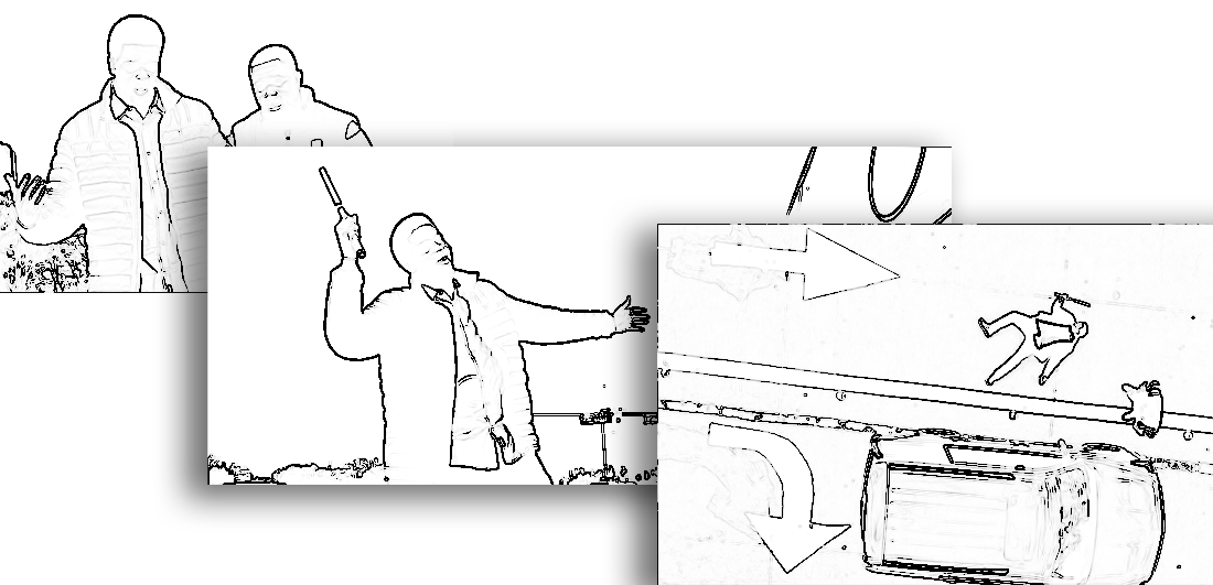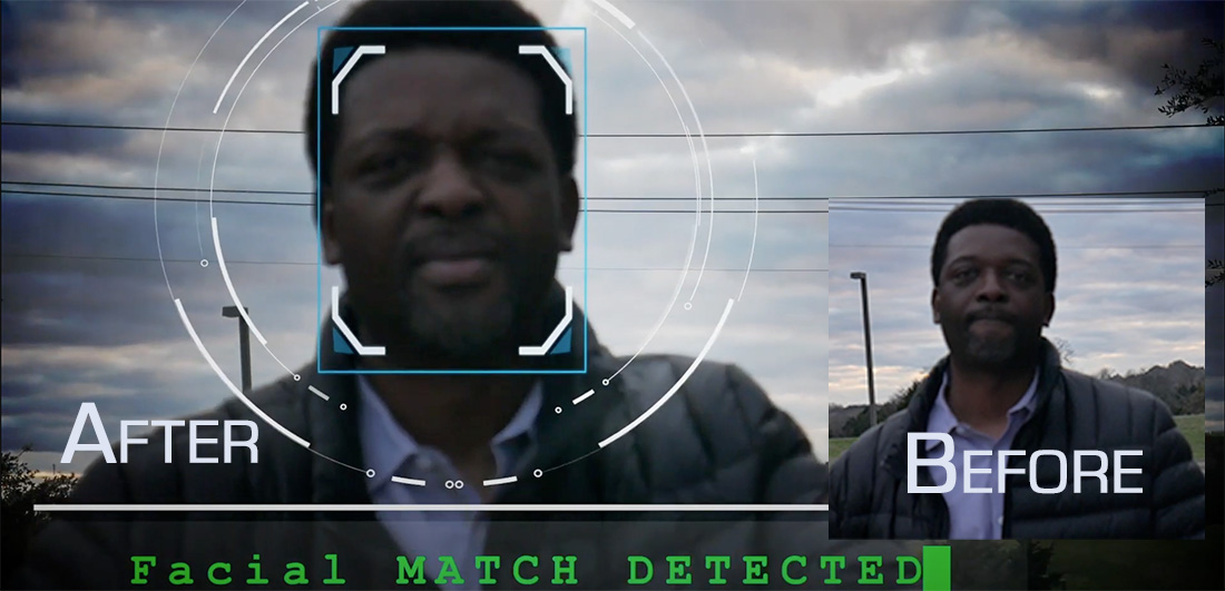 The visual narrative uses an old low definition image quality to show current day outcomes. The second half then examines a "What If" future state where killing is avoided through tech.